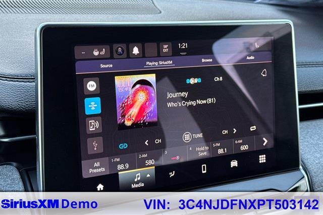 - UConnect 5 w/Seek-Scan, Clock, Aux Audio Input Jack, Steering Wheel Controls and Voice Activation