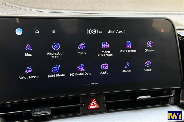 - Radio: AM/FM/HD Audio System -inc: 12.3" touchscreen w/navigation, 6 speakers, Apple Carplay and Android Auto, Kia Connect, voice recognition, WiFi, map OTA, satellite radio, steering wheel mounted audio controls and Bluetooth® phone and streaming audio